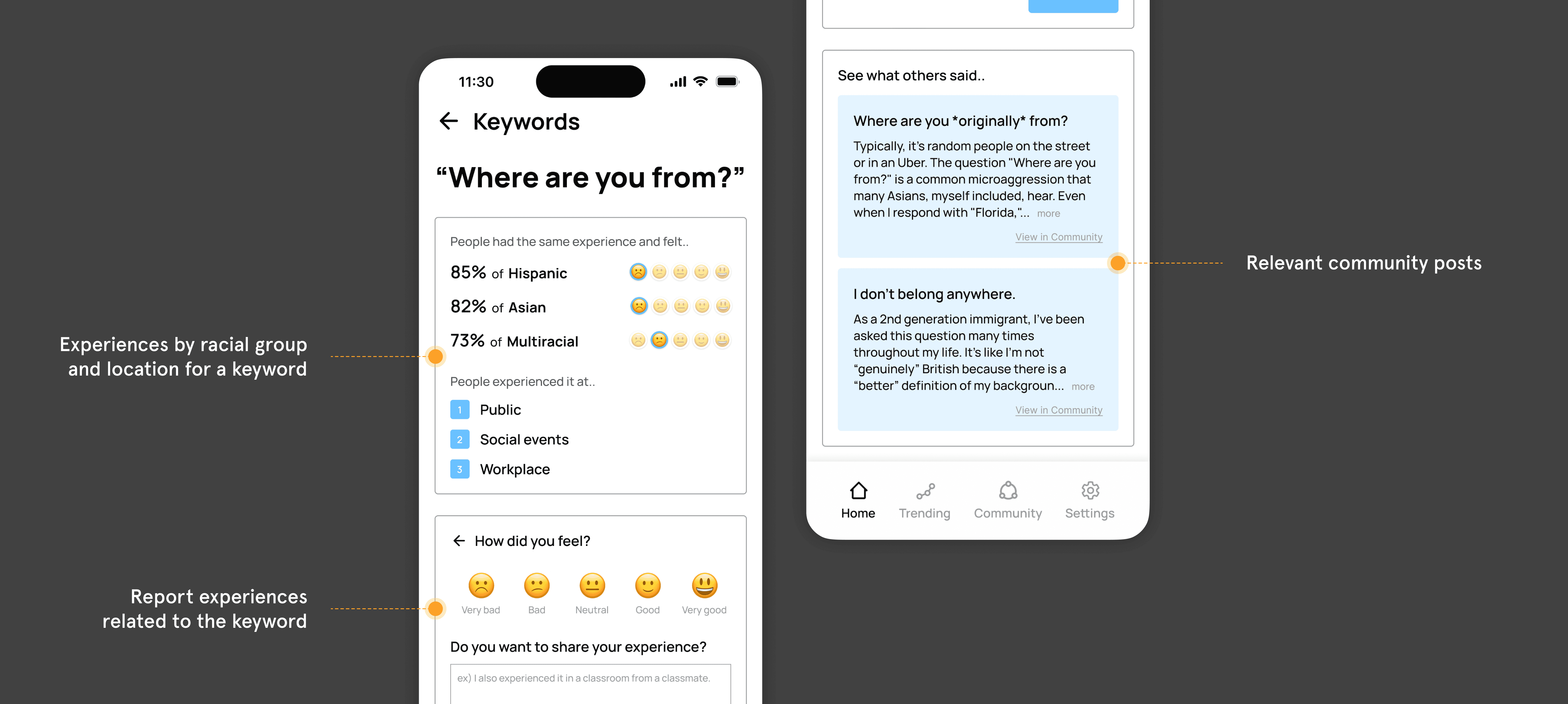 This project began with the idea that raising awareness and fostering mutual understanding could help reduce microaggressions in everyday life. With this in mind, I sketched an online platform that allows users to report and visualize their experiences.