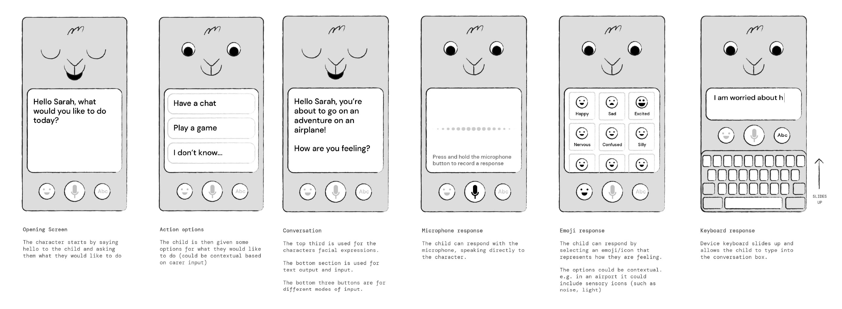 Large language models (LLMs) have the potential to support autistic children through their ability to engage in natural conversation without constraints. Combining this with our research findings, we began brainstorming designs for an AI companion app to support children during transitional moments.